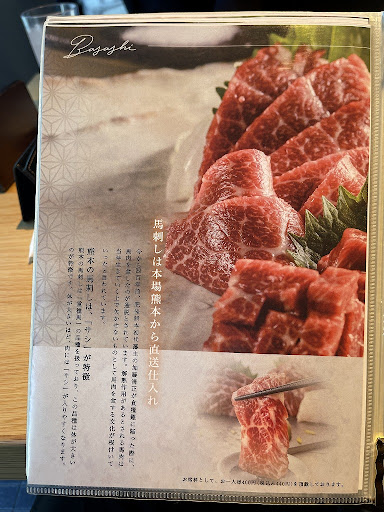 山笠セットがオススメとのことで注文。 たしかに馬刺しを単品で頼むとそれなりの値段がするので、一人ならセットが量的にも値段的にもいいと思う🙆♂️