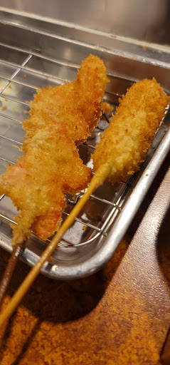 The kushikatsu has a crispy texture thanks to the fine breadcrumbs.