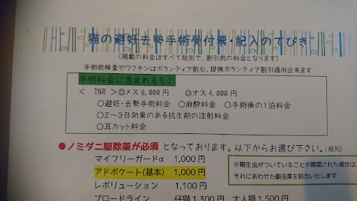 Read more正直TNR初心者にはおすすめできない病院です。 いつも行ってるTNR専門病院が休みだったため、急遽妊娠中の子を受け入れてもらえるか問い合わせました。 電話の対応は丁寧で、安心できそうだと感じたのですが...。 実際妊娠中の子は捕まらず、キャンセルするのも申し訳ないので別の雌猫を捕獲して連れて行きました。 その子は知人の餌やりさんが面倒を見ているのですが、まだ8ヶ月で小柄です。 預け入れてすぐに電話がかかってきて、「口内炎があるのでコンベニアを投与しますか?」と聞かれました。 いつものTNR専門病院ではメスは手術後の感染症を防ぐためコンベニアが必須なのですが、ここはコンベニアではなくノミ取りが必須です。 もちろん追加料金を払い、必要であれば栄養剤の投与もお願いしました。 引き取りに行くと「とても痩せている。口内炎がひどく、ちゃんと食べれていないのではないか?リリースせずに、自宅で保護を推奨します」と獣医が書いたメモをスタッフから渡されました。 とてもびっくりして、色んな手段を考えたのですが、うちも餌やりさん宅もこれ以上の保護は不可能。 うちは数日後から出張で家を空けるため、しばらく預かることもできず途方に暮れました。 しかし、ここでふと思ったのが、獣医の言うほどこの子は弱ってるのだろうか?と。 念のため体重を聞くと数日前に捕獲してTNR専門病院で手術した姉妹猫と同じ2.7キロ。 専門病院では体重も年齢も教えてくれるのに、ここは聞かないと教えてくれません。 それどころか、「この子はまだ8ヶ月で、普段は走り回って元気にモリモリごはんを食べてます」と言うと、8ヶ月ということもわからなかった様子。 「来た時から元気がない」と言われましたが、外猫さんにはよくあることなので、苦渋の決断でしたが翌日深夜にリリースしました。 その後しばらく経ちますが、元気に走ってごはんを食べに来ています。 驚いたのは返却時の対応で、TNR専門病院では丁寧に白いペットシーツを底に敷いて、布を巻いて返してくれます。 が、ここはなんとむき出しの状態でほいっと渡されました。 まさか術後ずっとむき出しの状態多くの猫さんたちと一緒に放置されてたのかと思うと、かわいそうでした。 捕獲機を巻いていった布は別で返され、狭いスペースで他の保護主さんと一緒にもらった新聞紙をひき、布を巻きました。 その際に一緒だった保護主さんの猫が血尿を出し、床に広がってしまいました。 捕獲機の中に新聞くらいひいておいてくれたら防げたのに、気の毒でなりませんでした。 いつも行く病院は白いペットシーツなので、血尿もすぐにわかります。 その保護主さんはとても心配して「よくあることなんですか!?コンベニアしたり、入院した方が良いのでは?」と焦っておられましたが、スタッフが獣医に聞きに行ってくると言うだけで、獣医から安心できる回答も得られていませんでした。 うちも同様「様子を見て何かあれば点滴に来て下さい」と言われてましたが、飼い猫ではないので現実的ではありません。 TNRだからこそ、その場で全力を尽くしてほしい。 うちは「保護できないなら毎日点滴に」と言われ、正直不信感すら募りました。 本当にそんなに危険な状態だったのなら、手術の前に、手術を決行するかどうかをまず相談してほしかったです。 前述の通り、その子は毎日元気に走ってごはんを食べに来ています。 口内炎と知ってからは、缶詰めに変えましたが、よく食べます。 あの診断は何だったんだろう?と今でも不思議です。 うちは30匹以上TNRをしているので、なんとか判断ができましたが、初心者でこの病院しか知らない人は本当に気の毒だと思いました。 事実、初心者の方がむき出しで猫さんを運んで帰っていて「知識がないので不安」と漏らしておられました。 前泊や後泊が無料だそうですが、あの状態で部屋に置いとくだけなら本当にかわいそうです。 泊まりのお金を払っても良いから、ちゃんと見てくれる病院に預けたいです。 偉そうに書きましたが、急遽受け入れて下さったことは感謝しています。 TNRに対する想いがある病院で、今回の対応はたまたまなのか、単に人手不足だったのだと信じたいです。 しかし、やはりTNRの手術は一般診療の合間に行うのは限界があると思います。 遠くても専門病院(送迎もあるし、レクチャーしてく...