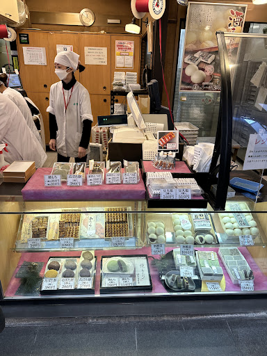 Read moreThe building in which this sweets shop is located is truly beautiful. One of the most photogenic shopfronts I've seen in ages. The store sold all kinds of delicious rice-based sweets. I walked past it several times over the course of an hour and there was always a long line of people waiting to buy their sweets. I bought some mitarashi dango (just grilled, so hot) that were dipped in the most delicious, sweet sauce. There was loads of sauce left in the tray when I finished my treats. I can't ever remember eating better dango. One dango...