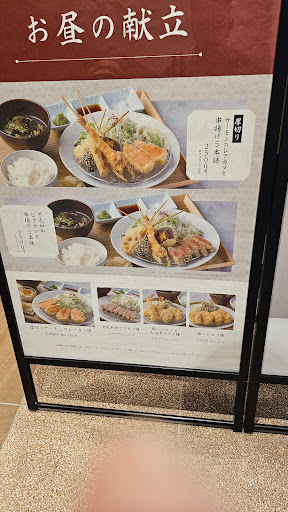 Read moreA nicer spot for kushiage that offers lunch set menu options. I went a little after opening and just missed the first set of seating but the wait wasn't too bad. Things moved along pretty fast as things were streamlined with the more limited menu. Most people got the set menu with either salmon or steak as the main. Very easy, approachable, and reasonably priced for being in a fancy department store building. It satisfied the itch of kushiage in Osaka for me.