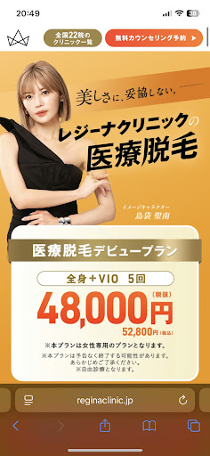 総合的に、とても満足しています。 一度エステ脱毛で40万近く払って契約した会社が急に潰れて失敗していたので、次の医療脱毛のクリニック選びは慎重になりましたが、レジーナクリニックさんを選んで良かったです。ほぼ同じ金額で望んでいた効果がちゃんと得られました。 特に毎回丁寧に優しく施術してくださるスタッフのお姉さん方のおかげで、医療脱毛ですがエステ感覚で気持ちよく通えたのが良かったです。痛いけど、声掛けが優しくて乗り越えられました。 またツルツルにしたくなったときは、こちらにお世話になろうと思います。 本当に...