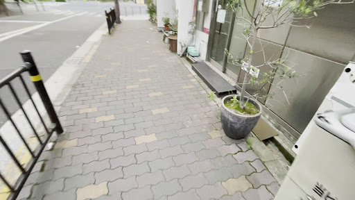 I stepped out of Namba Shrine west from its back gate. I walked through checkered streets, turning corners at random. At the corner of Naniwasuji Street and Utsubo Park, I found Kusunaga Shrine, which is located just across the plaza from the Utsubo Tennis Center Court, which I have visited several times, without noticing the shrine. Or in one eye and out of the other?