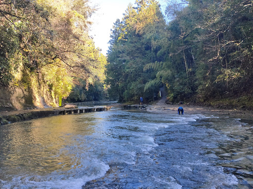 Read moreしっかりと整備されているので、子供やお年寄りでも歩ける遊歩道です。降りる時と登るとき以外は傾斜もなく楽に歩けます。 実際、小さな子供を連れた家族が沢山歩いています。 距離は粟又の滝まで3キロ程度で、のんびり歩いても往復2時間程度です。 川の流れも緩やかで、浅い場所ならば川にも入れると思います。 時折野生の猿が川まで出てきますので注意してください。 又、トイレはありませんので、遊歩道に降りる前に...