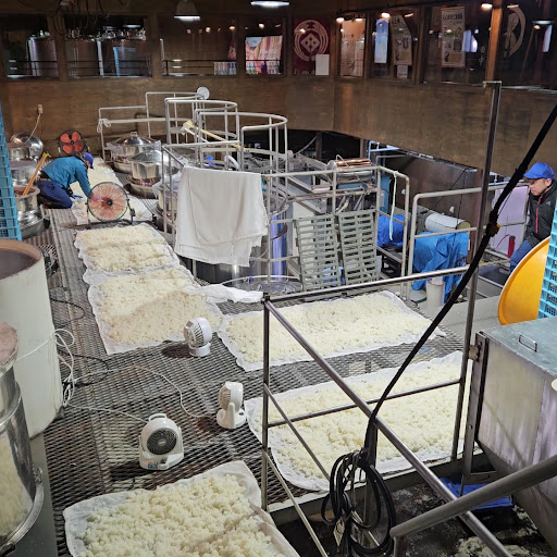 The friendly manager in the shop encouraged us to go upstairs and view the brewing process, which was in full swing. This is not some BS tourist show. It's a legit operating sake brewery, and you gain a whole new perspective on what's involved in turning humble grains of rice into Japan's signature brew.