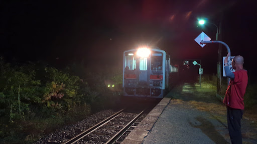 駅舎内は虫が入るからと閉め切らなければならず蒸し暑くてホームで駅ノートなどを読んでくつろいでいました。そんな中轟音を上げながら高速で通過する特急列車。警報機が無く通過時にはかなりびっくりしました。