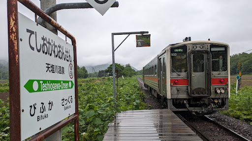 Read more宗谷本線、天塩川温泉駅に訪問しました♨ 板張りのホーム、三角屋根の駅舎、見渡す限りの山々、どれを取っても素晴らしいロケーションです! 雨に濡れた板張りのホームが良い味を出しています🎵 駅の中は、ブラのベンチが二組、トイレもあります。 ベンチの反対側には、一畳ほどの小上がりがあり、この駅で宿泊できるな〜と思いました。 ただし一畳なので、1名限定ですが(笑) この駅から温泉まで徒歩移動を考えていましたが、ちょうど温泉行きの地域バスがあったので、それに乗車しました。 なんと地域バスなので無料でした! 温泉は10時から日帰り入浴もやっていて、受付の方はスゴく愛想が良い方でした🎵 駅、バス、温泉、全てにおいて...