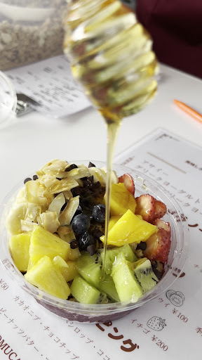 Read moreインスタのストーリーを見ていたら、広告でこちらのお店が出てきました!アサイー大好きなので気になって近くにいたのですぐに向かいました!スタッフの方の対応もとても良く楽しく会話させて頂きました♪♪メニューを見るととても見やすく、アサイーにいれるフルーツも選ぶことが出来ました! 自分の好きな物だけ選べるのはめっちゃいいです! 味もとっても美味しくて、前日に行ったアサイーのお店とは全然違いすぎてハマりそうです!笑 はちみつもかけ放題でした。はちみつ好きは大量にかけれます!!笑 とっても美味しいアサイーに、対応にとても満足しました♪♪気になってる方は是非行ってみてください♪♪...