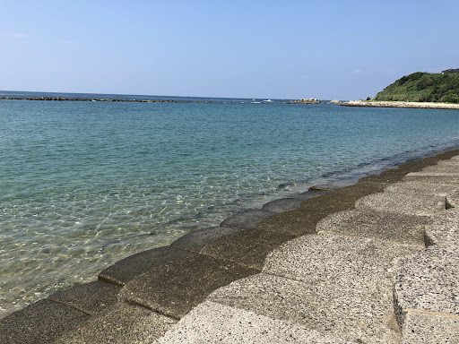 海中には海藻なども無く、綺麗な砂浜が広がっていますが、所々岩が出ていますのでマリンシューズなどがあると安心です。 消波ブロックで囲まれている海水浴場なので、波も無く、言わば海水のプールみたいです。 消波ブロック付近は岩場になっており、場所によっては干潮時には足が付きます。 消波ブロックには、チョウチョウウオや鮮やかな青い魚、ムラサキウニ、ヤドカリなどもいて楽しめます。 黒いナマコみたいなのもいますが、食べられるナマコでは無く、クロナマコモドキという気持ち悪いヤツもいますが、捕まえると子供は喜んでいました。笑 シュノーケルやフィンがあると良いかも知れませんね。 ※消波ブロック付近は、外海からの流れもあり危険な場所でもあるので注意が必要です。 監視小屋下の階段下にはモエビもいました。 昨年は、消波ブロック付近でタコや伊勢エビを捕まえていた人もいましたよ(捕まえて良いのかどうかは分...