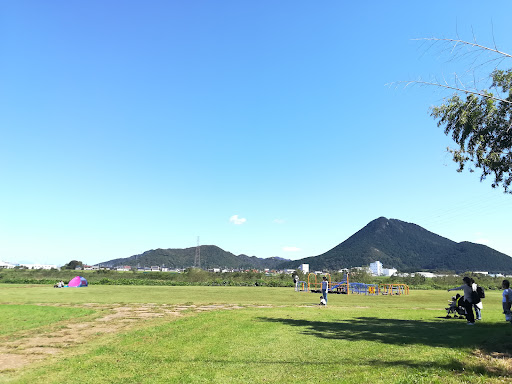 天然芝のグラウンドと陸上トラックがある河川敷。写真は1月のものですが芝はとても良い状態。トイレは堤防道路向かいの体育館へ。国道8号線も近いので食事やコンビニへも近くアクセスは良好。観戦用のスタンドも堤防に少数完備...