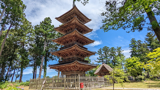 Read more日蓮宗佐渡三本山の一つで、新潟県唯一の木造五重塔があります。細身の塔と重々しい瓦屋根の対照が美しく、佐渡の景色にもよく映えます。妙宣寺は佐渡中央の平野部を北東に望む丘の上にあり、見晴らしはなかなかのものです。 国重文に指定されているのは五重塔一棟のみですが、巧みな彫刻に飾られら本堂と祖師堂も見ごたえ十分です。境内はよく手入れされていて気持ちよく参拝できます。御主題もしくは御朱印は本堂左手の庫裏でいただけて、塩対応されたとの口コミも散見されるものの、私がおうかがいした折の対応はとても丁寧でした。 妙宣寺の異称でありこのあたりの地名にもなっている阿佛房(坊)は、承久の変に敗れて佐渡へ流された順徳天皇の近侍の臣であり、順徳天皇と同じく佐渡へ流された日蓮上人に教化されて熱心な信者となった人物の名に由来します。境内には後醍醐天皇の側近で佐渡に流された後に処刑された日野資朝の墓もあり、佐渡にあってもとりわけ強く歴史の流れを感じる場所です。