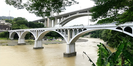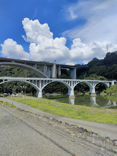 Read more昭和13年架橋、土木学会選奨土木遺産です。 四連のコンクリート製上路アーチ橋で、今では軽自動車でもすれ違い困難な幅員なのが架橋当時の交通事情を残しています。