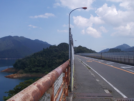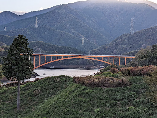 An orange color bridge over Lake Miyagase., 39 miles southwest of Tokyo. It's a beautiful place and has an increase in foreign tourists. Although it's quite a shocking to learn that this is a well known suicide location, but can't argue that it has very beautiful breath...