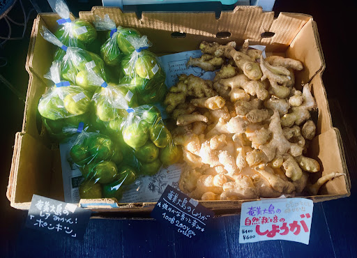 秋から春にかけては、鹿児島・奄美大島から届く「生姜」が特におすすめ。色は黄金色で味が濃く辛味も強い!そして香りが深いこの生姜は、奄美大島の風と大地に育まれたパワーを感じます。また、同じ奄美の柑橘や湘南産の上質なしらすなど、季節ごとに選び抜かれた“本物”が並ぶのも魅力です。