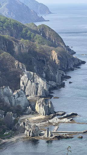 This rock shore is located in Shimokita Peninsula, the northernmost tip of Honshu. It is a mysterious scene with strange shaped rocks standing on the shore of the clear blue ocean. This rock shore is small scale, but here is the sea's Cappadocia. I arrived at the parking lot early in the morning and walked a promenade toward the coast for a while. When I get off the wooden staircase on a steep cliff, it is Hotokegaura rock shore. There is nobody in the shore, only the quiet wave and the distant bird's voice can be heard. I came to the end of the earth! It is felt that it is a thing. You can also go by sightseeing boat from Sai harbor, in that case you will arrive at the harbor of Hotokegaura. Although it is far away and inconvenient, it is the place that you want to visit...