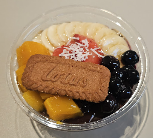 後日改めて、初めて買いに行った時、アサイーボウルを頼みましたが、トッピングの果物が3個だけでした。(パインがありませんでした)
