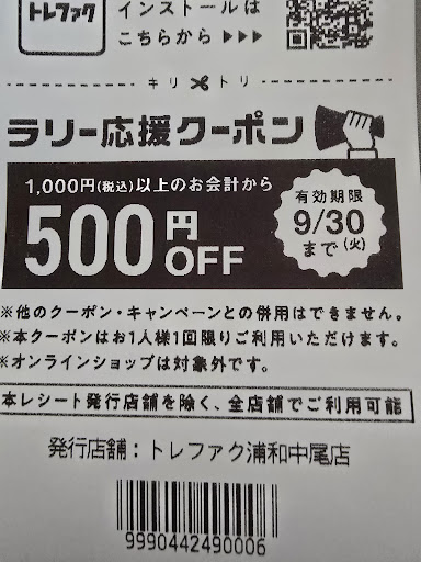 Read more他のトレファクも行くけどここが一番キレイで商品数多い、家具家電の状態も良さそう。掘り出し物を探しによくのぞいてます!古着やこどものおもちゃを購入することが多い、家族で大好きなお店。 家具は後日持ち帰りたい場合は五千円以上&取り置きで10%支払い、持ち帰る日に残りを支払う感じでした。 この間初めて買取お願いしました。 機械で券発行して預ける。査定が終わる時間がスマホでわかるのはありがたい。 古着のほとんどが10円からでメンズのそこそこいいブランドのダウン状態よくて800円。 子ども服はポールスミスアウター500円emuのブーツが300円ぐらい、NIKEのスニーカーは値段つかず。 Switchlite新品未開封で5000円(シュリンクがないからとのこと) スズキヴァイオリン1/16は1000円 安く売ってるの分、買い取りも安いからこの値段なら 時間ある人はメルカリや、誰かにあげたほうがいいと思ってしまった。 せっかく見てもらって本当申し訳ないけど思い入れがあるものは買取やめました。 改善してほしいのは1階トイレがトレファクになってからめちゃくちゃ臭い!! 虫も多い...