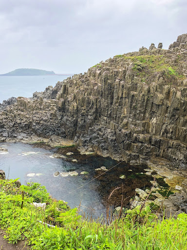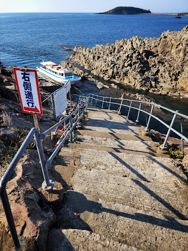 前を向いて右側、左側の席どちらに座った方がいいかと言うと、一応満遍なくまわってはくれますが若干通路を挟んで左側の席の方が崖の模様や洞穴などの見どころ、夫婦岩、雄島にある神社が近めに観覧出来たと思いますのでご参考までに。人が写らないように写真を撮りたいとかお子さん連れでとかでしたら左側がおすすめかもです。 (自分は右側に座りました)