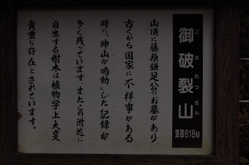 鎌足公の墓の脇にある展望台でくつろいでいるとストンという音がする事がありますがこのあたりはリスが多く生息しており何度も見ています。 5年位前までならこの展望台から双眼鏡であべのハルカスや天保山の観覧車、神戸のポートタワーや明石海峡大橋や大阪湾も見えたが樹木が伸びて奈良盆地も含めて全く何も見えなくなってしまったのは残念。 このあたりは貴重な樹木があるので難しいかも知れないが樹木を刈って整備が望まれる。この状況では展望台とは言えません。 この墓から西大門と談山神社に下る分岐のあたりまでは後破裂山城という砦の跡ですが戦後植樹された杉の為見通しがありません、 西大門に下る道の途中に西方向の見通しの良い所があり...