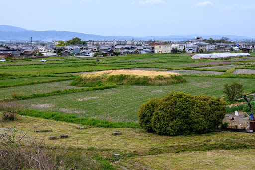 Read moreJR桜井線をはさんで箸墓古墳の東に位置する。帆立貝形古墳で纒向型前方後円墳とも呼ばれるが、前方後円墳とは区別して考えた方がよさそうだ。築造は卑弥呼の時代と重なる3世紀半ばとされるが、4世紀まで下るという説もある。全長80mで円部55m、方部25mだから一般の前方後円墳より方部が小さく、かつ低い。出土品は一括して重要文化財に指定されている。この古墳が3世紀半ばとすると、これより様式が新しい箸墓古墳は早くても3世紀後半、あるいは4世紀まで下る可能性もある。そうなると魏志倭人伝の卑弥呼の時代と合わなくなる。この辺はいろいろ大人の(研究者の)事情もありそうなので、深入りしないが。頂部からの眺めは良く、西に堂ノ後古墳をはさんんで箸墓古墳が望める(写真1枚目)。周辺にもい...