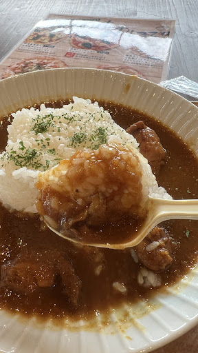 とにかくお腹が減ったので何か食べなきゃーと思ってカレー食べました。 平日の午前中だったのでお客がおらず提供も早かったです。 まぁ普通のカレーです。 手作りらしいです。 他は店内植物が多く販売されてました。 お土産などはどこでも買えそうな感じのものです。 無添加のものはやはり売ってないなぁ…ということでカレーだけ食べてスタンプを押して出ました。 駐車場が道を挟んでいるのでなんとなく遠く感じるかな。 道の駅自体は新しいと思うけど、特に惹かれるものはなかった。 観葉植物などを目的に行くならいいかも。 軽食販売以外に、外にパスタのお店もあるっぽいです。