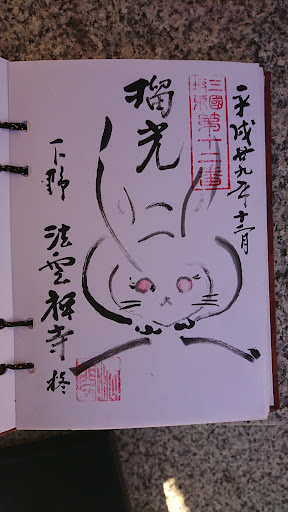 Read more日曜日に参拝し、幸運にも住職さんに会えました。本堂に上がり、20種類程ある書き置きの御朱印に込められた気持ちを、1つ1つ丁寧に教えてくれました。今回はうさぎの御朱印を直書きして頂きましたが、また来たら違うのを書いてくれるそうです。帰りに、本堂脇にある本や食器はいくらでも気に入ったものを持ってっていいよと言われたので、1つずつ頂きました。...