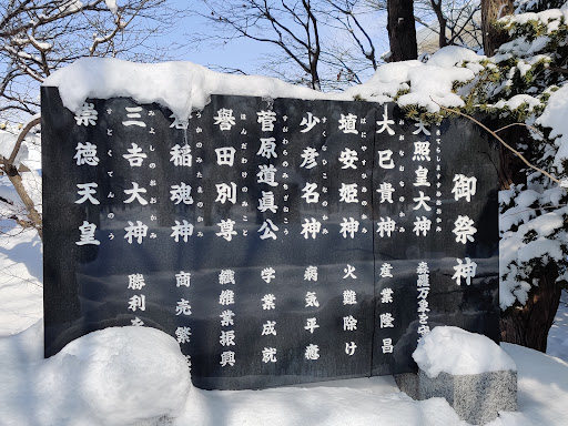 Read more実は北海道でも有数のパワースポット。 祀られている御神体の数が多い。 天照大神(あまてらすおおかみ)言わずと知れた日本の最高神、あらゆる祈願の成就、太陽神、天皇家の祖神 少彦名神(すくなひこなのかみ)医療、農耕、温泉開発の神 大穴牟遲神(おおなむちのかみ)縁結、家庭円満、子宝祈願、商売、五穀豊穣、因幡の白兎を救ったのもこの神様 倉稲魂神(うがのみたまのかみ)命の根の神、農業、工業、商業などのあらゆる産業の神 埴安姫神(はにやすひめのかみ)農業、陶芸、鎮火、トイレの神様笑 誉田別尊(ほんたわけのみこと)武道、武運 崇徳天皇(すとくてんのう)、縁切り 菅原道真公(すがわらのみちざねこう)学問 藤原三吉命(ふじわらのみよしのみこと)勝負事、力 (ホームページ等参照) 北海道という土地柄、農業神が多めです。縁切りと縁結びどちらもいるのはどっちの効果が出るんでしょう? 日本三大怨霊の平将門、崇徳天皇、菅原道真の内2人が祀られているのも面白いですね。日本では怨念などを持って殺された人物が後に起きた天災や流行り病がその者の怨念だとされて、逆に祀り上げることで鎮めようと神格化されるということが沢山あります。これらの3人も、いや、神様として祀られているので3柱(神様の助数詞は柱で...