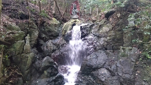 ご本堂の右側に仏様が祀られて、滝の水が流れて神秘的な場所ですね、