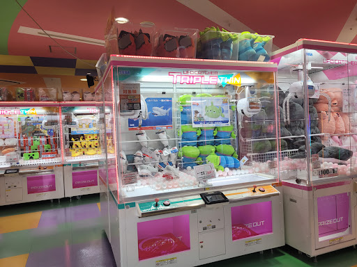 好きなゲームの景品が投入されているのが近くではここしかなかったため利用しました。休日でしたが1階のUFOキャッチャースペースには従業員の方が2人しかおらず、店員さんを捕まえるのが大変です。あと、ほぼ全ての台にクレサ(500円で6プレイ)はありませんでした。 欲しかった景品は橋渡しの設定でしたが2000円弱で取ることができました。上手く行けば1000円ちょいで取れる感じだったのでわりと妥当な設定だったのではと感じました。 ジェミニマルチに投入されていたぬいぐるみも挑戦しましたがほぼ実力では取れません。爪にゴムがついていないのでかなり厳しいと感じました。天井は3000円ぐらいだと思います。(ちゃんと数えてないので詳しい数字は分からない)言い換えればこの筐体の特性上、天井まで行けば確実に取れるので苦手な方にも優しいかと思います。あとセンサーが反応しなかったり、上ブースで取ったものが下ブースに落ちる(ゲット判定でした)などでゲットしても天井が継続されることがあるため、3000円で2つ取れるみたいなこともありました。店員さんはわりと親切な印象でした。また機会...