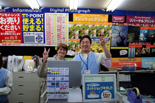 The sales people here do not speak English well, but there is a good supply of camera lenses and supplies. The selection is a lot better than at the exchange on base. Japan market cameras may not have English options, so be sure to bring a Japanese friend if you plan on buying camera bodies here, or at the least, bring your camera to test lenses if that's what you are after. If you can get a list of what you are looking for and bring it with model numbers, that would be best for finding...