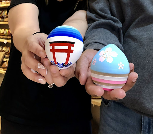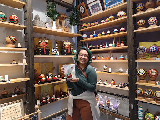 Yukiko-san was so incredibly sweet and kind! Youre supposed to have reservation if you want to paint a top, but i didnt know, because they need to prepare the wooden tops to paint. She was still so accommodating and i was able to paint. She was so much fun and very passionate about the creativity and techniques for painting tops specifically it was amazing to learn so much from her. She showcased many different tops and how its design came to life when it spun. She also teaches you the sasebo way of launching the top and how to play with it. Her shops been in Sasebo started by her grandfather over 100 years ago. The top i painted came with an info sheet with more information on history and instructions.