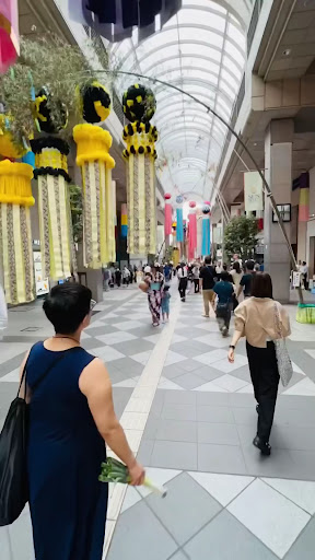 The Tanabata Festival in Sendai, based upon an ancient Chinese love-story, now widespread throughout Japan, is celebrated (according to the Chinese calendar) each year over the three days of August 6th, 7th and 8th. Others in Japan attend Tanabata events on July 7th. This romance is a bitter-sweet, hopeful account of an fleeting-moment rendevous under ideal, good weather circumatances. Visitor from throughout Japan and around the world, press into the arcade to view these spectacular, lively streamers. They gracefully hang from high arcade arches above (and, perhaps, some would say reach into the heavens). Individuals of all ages stand below their beautiful stunningly individually crafted, very special, colorful unforgettable forms. But, the underlying amazing and captivating ancient Chinese poem is equally remarkable as well as awe inspiring.