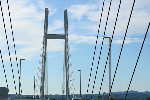 Read more立派な二本のタワーからなる全長825mの斜張橋 夜にはライトアップされるようです。