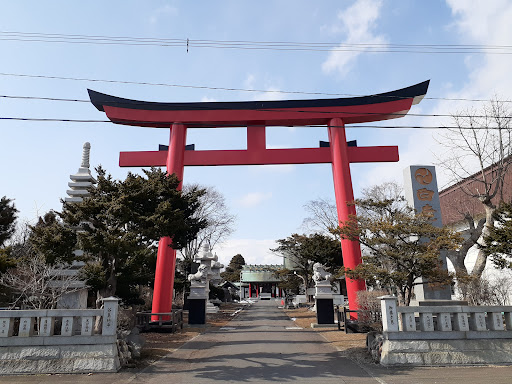 Read more2025.02.22 ・JR室蘭本線沿い、白老町図書館の横に神社はありますが、随分と立派な鳥居です。あとで調べてみると、高さ16m、幅20mと、かなりのサイズで全国クラスのようです。 ・社名標も金色の字で、格好イイですね。ここの神社、境内にある奉納品、すべてがデカくて立派です。 ・境内末社なんでしょうか?雪のため近づけませんでしたが、秋葉大権現と水天宮が祀られているようです。 ・手水舎も立派です。3月いっぱいは、冬期間のためお休みです。「洗心」手を洗いながら心も洗う。日本人の素敵な発想です。 ・神門も立派です。 ・重厚感のある社殿です。屋根は銅板なんでしょうか?色合いが重さを増してきています。 ・社殿右手には社務所がありました。納骨堂もあるみたいです。ちょっと珍しいと思いました。 ・淡い模様の台紙にきれいにプリントされた御朱印です。見ていて美しい御朱印もファンが多いことでしょう。 ・境内に奉納されているものが立派で、地域の方は神社に理解があり熱心なんだなと感じました。また、実際のところ神社も経営のセンスが問われる時代であり、ここはうまくいっているのではと感じる神社でした。このような視点で神社を考えたくはないですが、現実は存在します。でも、本当は神社って、日本人の心...