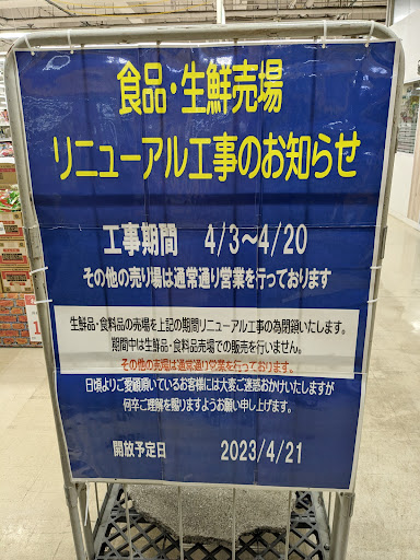 2023.04.04!!注意!!4月21日09時30分まで食品及び、生鮮物のコーナーやってません!