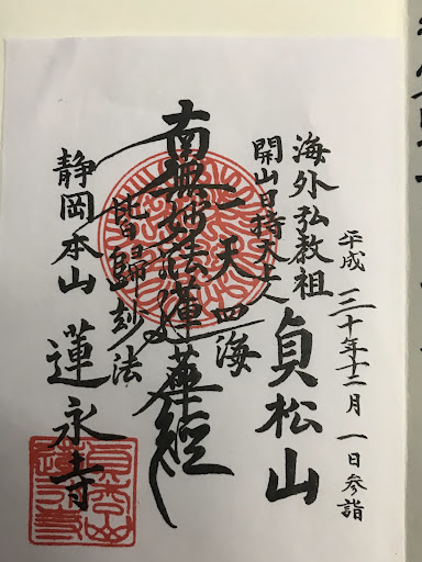 Read more静岡市葵区沓谷の静岡県道静岡清水線沿いに境内を構える日蓮宗本山の由緒寺院。 蓮永寺縁起に依れば、日蓮聖人の高弟日持上人が駿河国庵原郡松野村に開山するが以後衰退する、日蓮宗の信者で徳川家康の側室『お万の方』が元和元年に駿府城の守護を願い沓谷に移転して寺の名称を蓮永寺に変更したとされる寺院、境内はかなり広く綺麗に整備されて居る、静岡市指定有形文化財の養珠院供養塔などが立ち並ぶ、参道脇には棕櫚の木々が植えられ朱色に塗られた鐘楼が目立って居る。 蓮永寺を創建した日持上人は東北地方から蝦夷地に進み樺太から海外布教を目指したと云う伝説の僧侶の様です。 勝海舟の母や佐久間羅山の妻等の墓地が有り、参詣時は小雨が降るお彼岸の日でしたが御本堂前...