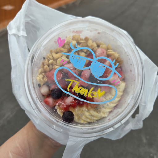 知り合いが行ってよかったとおすすめされたので行ってみました。 こじんまりとした店内で、お店に入った時、前に注文済み、受け取り待ちの方が2人おり、こちらも2人で来ていたので外で待っていようかどうしようかと悩んでいましたが、店員さんは奥で作業をしており、特に案内もなかったのと天気が悪かったので、待っていた方達に会釈をしながらレジ前へ移動、一応すみませんと声をかけさせて貰いましたが、食入り気味にお待ちくださいー。と。 ここで空気がちょっと重くなりました。 そして前の方のアサイーボウルが完成し、表へ女性スタッフの方が出てきましたが真顔でレジ前に来てからも目線はずっと下、機嫌が悪そうなオーラでお待たせしましたも、注文どうぞの一声もなくずっと無言、、注文いいですか?と聞くと、はぃ、と声もびっくりするくらい小さく、終始やる気のない態度でこちらも休憩時間のタイミングに来てしまったのかな?と申し訳ない気持ちになりながら注文しました。 もともとイートイン予定でしたが、こじんまりした店内でそんな空気感の中食べたくなかったので受け取ってすぐお店を出ました。受け取る時に消え入りそうな声でのありがとうございましたー、、は聞こえましたが、お店を出たあと、なんでこちらがここまで気を使っていたのだろうと、徐々に苛立ちの方が勝ちました。 知り合いの時は男性の方が対応してくれたようで良かったと聞きましたが、今回はネイルが派手なギャル系の女性の方で、バイト?だとしてもあまりにも酷すぎます。 アサイーボウルは持ち帰りの時間もあったので、ジャバジャバと緩くなっており、食感は残念でしたが味は美味しかったです。 ただ、あまりにも来店して商品受け取りまでの女性スタッフの感じが悪く、楽しみにしていた分、とても残念な気持ちでいっぱいなので少なくとも女性スタッフの日は行かない方がいいと思います。 グリークヨーグルトも気になっていたのと、インスタもフォローして、初めてはこれ、次来たらこれも食べてみたいなとウキウキしていましたが当分行くつもりはありません。 少しでもスタッフの対応改善してくれ...
