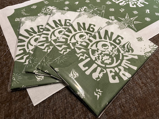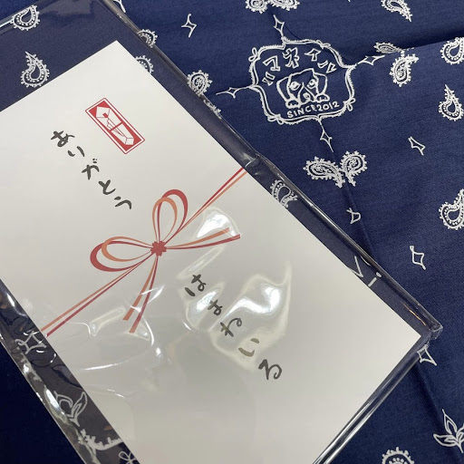Read more書道団体・50回目の展覧会の記念品として、会長の4文字作品をそのまま一辺1メートル大の風呂敷で、紺に白抜き、印を赤にする二色刷りで作りました。生地はシャンダンでやや高級感ありかなとも思います。 原稿にした作品は半紙より小ぶりで、カスレの線が多かったですが、家庭用スキャナーのマックスで原稿を送ったところ、予想以上に良くできました。風呂敷が正方形なため全体のバランスや落款(作者の署名)の位置や大きさをメールで何度かやり取りしながら進めましたが迅速に対応していただきました。完成品は箱に入れ熨斗をかけてもらいました。また別料金でしたが、はがき大のメッセ―ジカードに挨拶文と語句の解説を添えられたのも良かったです。この手の白抜き風呂敷はこれまでに数枚持っていましたが、今回作ったものが一...