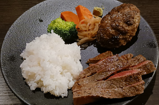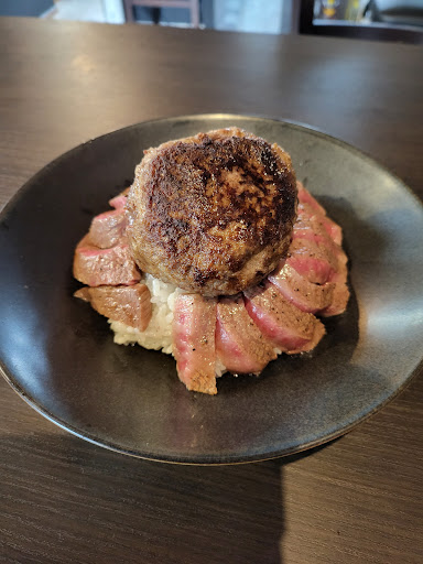 黒毛和牛ステーキ&ハンバーグ丼3500円を注文。 17:30からの予約があるとのこと 同時進行で店主一人のため 着丼まで30分ほど待ちました。 予約してから伺うと よいかもですね( ^ω^...