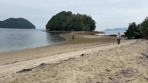 お友達とドライブ中、運良く干潮時に訪れることができたので寄ってみました。 ひょっこり浮かんだ島までの道すじがなめらかなS字になってるのが、島を幻想的にみせてくれていました。普段歩く海岸の砂浜とは少し様子の違う海底の道では、イソギンチャクや貝の赤ちゃんその他さまざまな珍しい何かを見ることができ、私たちは年甲斐もなく大はしゃぎしながら発見を楽しみ、散策を十二分に堪能することができました。戻り道ではそびえる岩のせまーい隙間を洞窟に見立てちょっとした探検気分を味わってみたりもしました。...