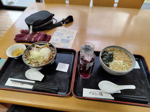 Read moreDid not use the public bath, but I'm sure after that hot water you'd be more than happy to have a great meal. The noodles in both dishes are hand made- soba and udon noodles. The left is a mushroom filled soya base soba soup :) and the right is a soya based udon soup with tempura bits. Nice and warm. This place has cold options too (and also other dishes than noodles- like a curry).