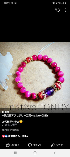 10/2 今回は、「ピンクタイガーアイ」のブレスレットの画像に惚れ込んで購入させていただきました。 実物を手に、さらにその美しさに見とれてしまいました。 いつもどおり、迅速丁寧なご対応でした。 またお世...