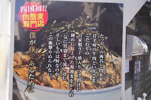Read moreうどん県にありながら、お昼には行列のできる大人気の肉蕎麦のお店。スタンダードなタイプは程好く甘辛の牛肉と白髪ネギ、刻み海苔をトッピングしたお蕎麦と付け出汁にお好みで辣油、一味、七味、魚粉…などの薬味を入れて食べるstyleの新しい美味しさ!写真は肉2倍(+200円)にしたものです。麺や出汁も食券では温かい、冷たいの2種類ですが、注文の際に麺は冷たい、出汁は熱いといったオーダーにも気持ち良く対応して貰えます❗期間限定の牛肉以外のバージョンも出ます😄今は鶏チャーシューのお蕎麦、夏暑い中もキリッと冷たいお蕎麦とボリュームたっぷりの鶏チャーシューがさっぱり&ピリ辛で食欲をそそられます。一度食べるとすぐまた行きたくなる病み付きの味でお勧めです😄 ちなみに、鶏チャーシューではなく、焼いた鶏肉になりましたが、新しく鶏そばが定番入りしました✨こちらも牛肉とまた違った美味しさで私は交互に頼んでます😄 普通の日本そばよりこしが強いこちらのお蕎麦。冬場はお肉の脂が固まらず、シャキシャキ葱も程よくしんなり、美味しく戴けるので出汁は熱(あつ)、麺はこしの生きる冷(ひや)の組み合わせが、暖かい季節は冷やが私はお気に入りです🎵 食べた後は蕎麦湯も楽しめます。帰りに『いってらっしゃい!』って笑顔で送り出してくれるのも嬉しい。 4月27日再訪。とても辛いみたいなので、今日は手を出す勇気がなかったのですが、生唐辛子を使ったペーストが味変調味料で新登場してました。ちなみにお肉も鶏か牛肉か悩ましい時は肉増し(2倍〜)すれば、牛肉と鶏の合盛りも出来ますよ。今日も美...