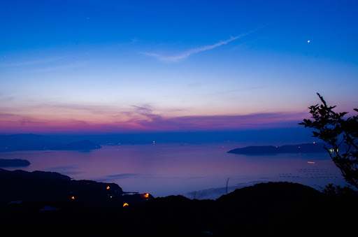 五剣山の山頂からは、瀬戸内海の美しい景色が広がります。晴れた日には小豆島や瀬戸内海の島々、さらには讃岐平野が一望でき、遠くの山並みまで見渡せます。特に、夕方には夕陽が瀬戸内海に沈む幻想的な景色が広がり、フォトスポットとしても人気です。