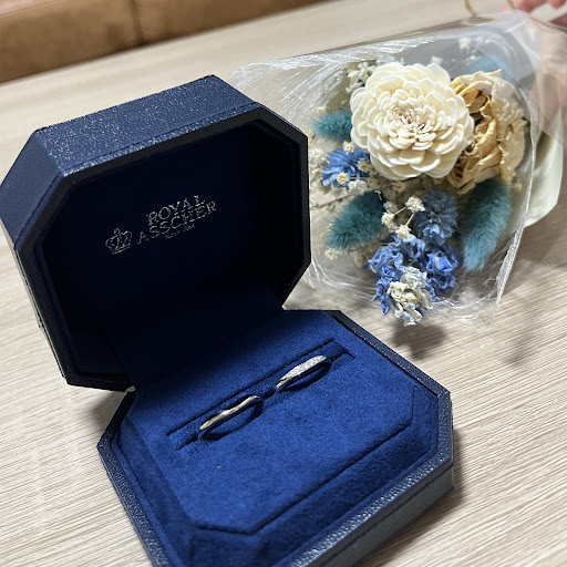本日完成した指輪を受け取りました。 指輪も夫婦2人ともイメージしていた通りで、さらには写真撮影のサービスもしてくださり、とても幸せでした。 先輩ご夫婦さんたちのコメントと写真のアルバムも拝見し、やはりイトイ高崎店さんにお願いしてよかったなと実感しています。