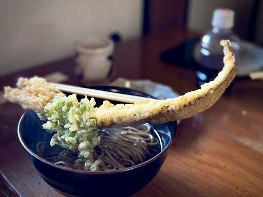 A definitive soba / tempura experience can be found here. After seeing a couple of the Takasaki highlights, we dropped in for lunch and felt welcomed from the moment we entered. This homely restaurant respects their buckwheat! Not a single stage is wasted from the flour / powder to the water the noodles are cooked in; everything is incorporated back into the meal. The tempura alone is outstanding, and then there's the ayu sweet fish gently cooked whole over an open fire indoors. I have only praise for this restaurant and the way they prepare their ingredients. The location itself should be mentioned: perched on a mountain side in an old-style home complete by a little...