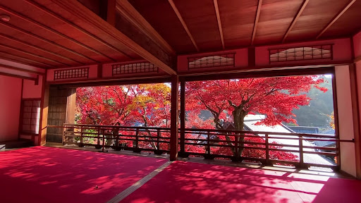 Read moreコロナ対策もあってか、15分程度に一組ずつの拝観で貸し切り状態です。 紅葉には少し時期が早かったですが、箱階段を上がった赤い毛氈のひかれた二階の部屋からの景色はそれなりにきれいでした。見ごろにはさぞかしきれいな事と思います。拝観料は結構しま...