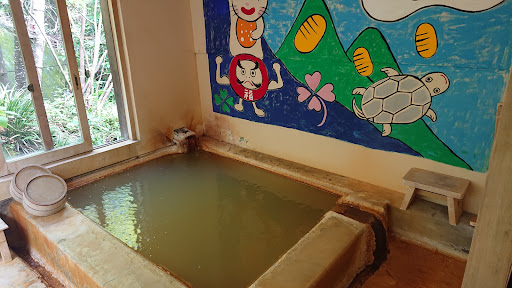 Read moreお部屋は2つのこじんまり温泉ですが、看板や内装に店主のセンスを感じます。 壁画がポップな色使いでありながら、何とも落ち着く雰囲気でした。温めのお湯ですが、源泉そのまま加温加水なしのお湯は50分では足りない心地よさ。この鉄が錆びたような香りがたまらないんです。エアコン、扇風機などの備え付けがないので真夏...