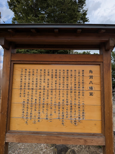 角渕八幡宮は鎌倉時代のはじめ、建久4年(1193年)源頼朝が那須野で狩りをした帰りに角渕で休み、烏川の風景が鎌倉の由比ヶ浜に似ていることで、後に奉行として上野国に入った足立盛長に命じて鎌倉の鶴岡八幡宮の分霊を勧請したことがはじめとされます。 中世の戦火に焼かれるまで、薬師堂をはじめ塔樓(とうろう)数棟、栄華を誇り、その後、応永18年(1411年)に関東管領畠山満家、永正4年(1507年)に白井城主長尾憲景の家臣吉里対馬入道が修理したとされています。...