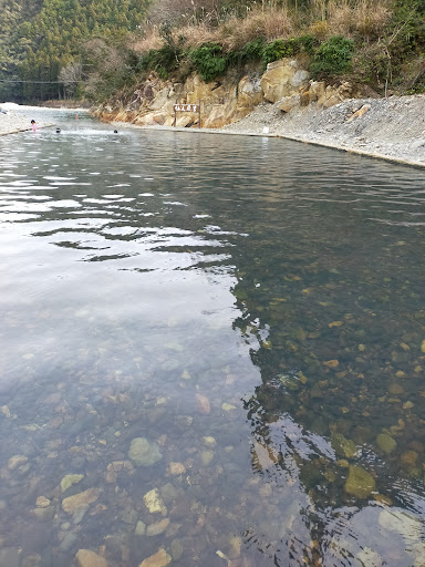 一部屋根もあり、全体を岩で作ってあるしっかりとした露天風呂。サイズは5m×4mほどで深さは60cmぐらい。恐らく全裸で入っても問題はない(?)が、ほとんどの人は水着を着用している。この付近では河原を掘った温泉が出にくいので、非常にありがたい。温泉の正面付近が川遊びに最も適した深さや広さになっており、夏場はこの温泉が活動の拠点になりやすい。日中は入れ代わり立ち代わり色んな人が入っているが、一応時々水を抜いて清掃して下さっている様子。 源泉は常時熱水が供給されており、ほっておくとどんどん熱くなる。水温調節は川からポンプで水をくみ上げることで行っている。壁側にあるスイッチを押すと自動でくみ上げが始まる仕組みになっている。特に責任者などはいないので、熱いと思った人がやる。温度の下げ過ぎと、感電に注意して行う必要がある。また、水を止める際に、ただコンセントを抜くだけだとサイフォンの原理により湯船のお湯が川に流れ出し、知らぬ間に水位が下がってしまう事故が起きる。ホースは水面から出しておくことで防げる。 まれに洪水などの土砂で露天風呂が埋まることがあり、その時期は当然営業できていない。またなぜか入るときにサンダルを脱ぐムードがあり、川からの行き来は少々面倒。 ちなみに分かりづらいが、この裏の階段を上ったところにトイレがある。 追記:2021/12月の時点で洪水により崩壊していたが、2022/8月時点で修復していた。どうやら近隣の施設が費用を出し合ってくださっ...